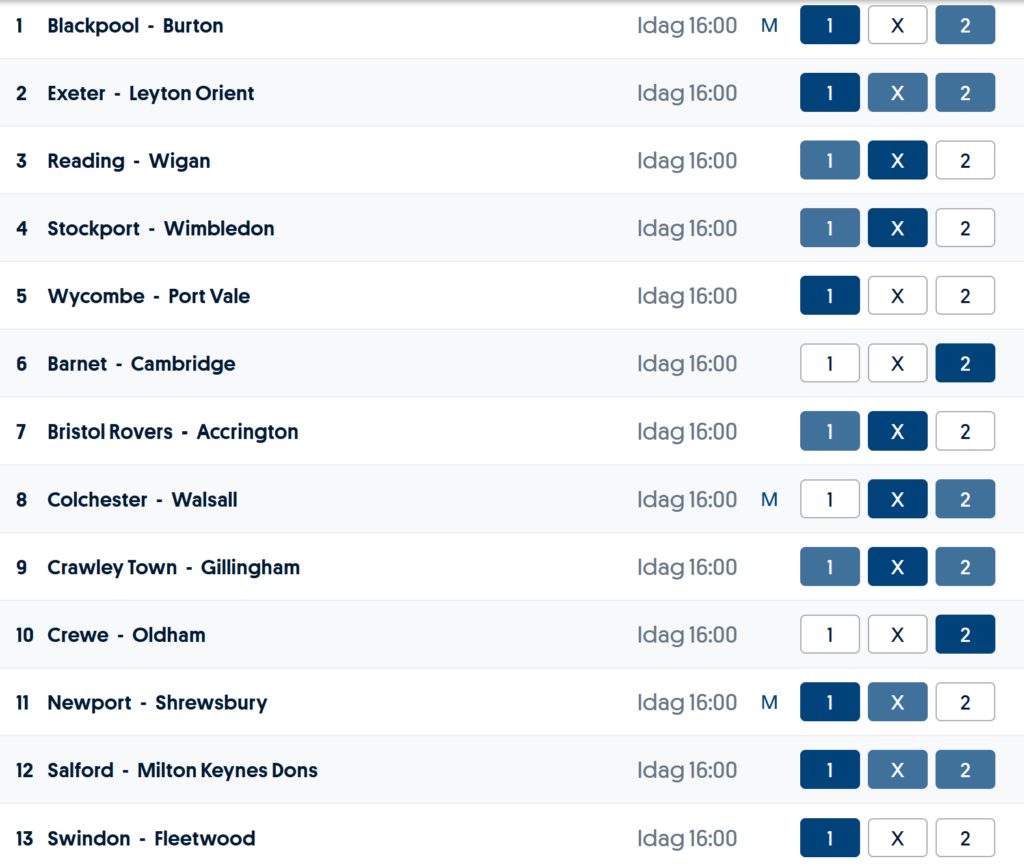 Travet förra gången gav intet – blott 1 rätt… Denna vecka är halvtråkig spelmässigt p g a fotbollslandskamper. Vi satsar våra surt förvärvade sekiner på Stryktipset som denna gång huserar engelska division 1- och division 2-matcher… Svårt med andra ord – tärningen har fått avgöra tecknen. Vi har satsat 192,- som om alla tecken sitter på ramen garanterar minst 12 rätt.